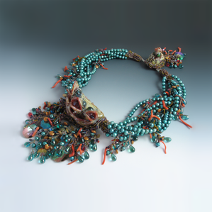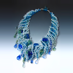Meditations on structure, beads are bound by threads into repeating squares and circles.